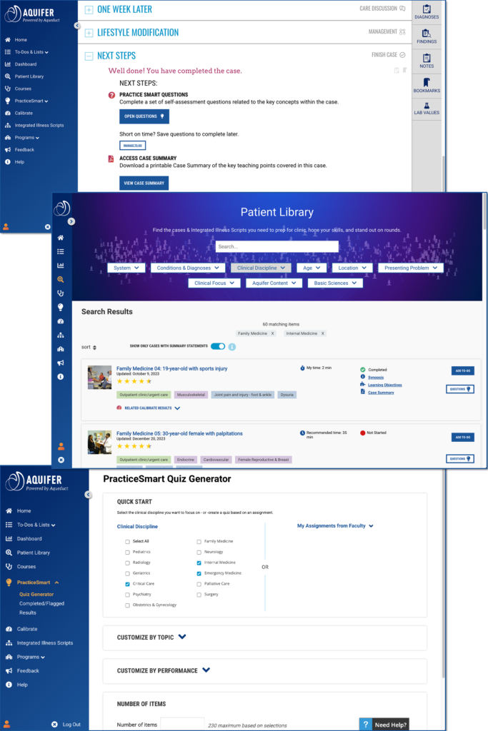 Aquifer PracticeSmart is much more than just another question bank. Each of the 1,000+ questions are the same ones students face during clinical rotations.