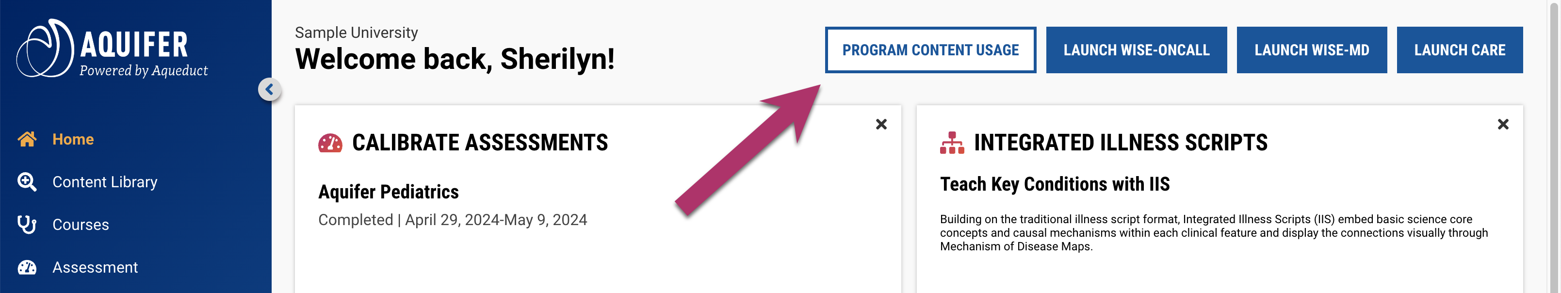 The Program Content Usage report is designed to provide a high-level view into total usage of Aquifer courses and Integrated Illness Scripts by your program during a given period of time.